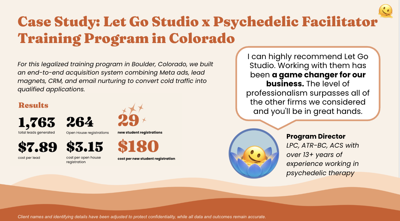 β Weβve worked with psychedelic therapists, clinical treatment centers, international retreat centers, and training programs operating in the U.S., Mexico, Canada and Europe.